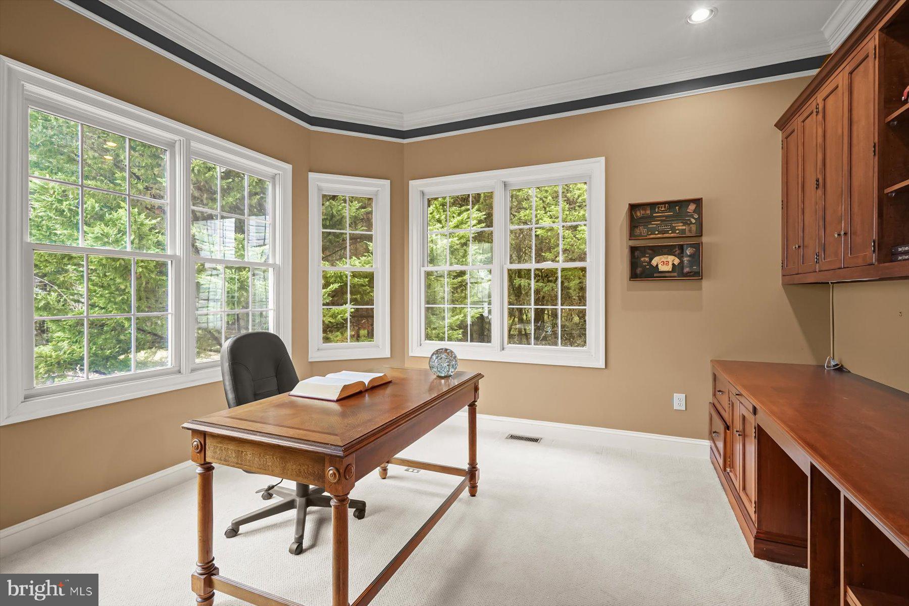 The main entrance features a soaring two-story foyer that creates a grand first impression. The main level also includes a formal living room, formal dining room w/ adjoining butler's pantry, large family room with vaulted ceilings, mudroom w/ Laundry, and a private home Office with large windows looking out to the serene forest. The large open layout island kitchen includes a walk-in pantry and adjoining breakfast area.